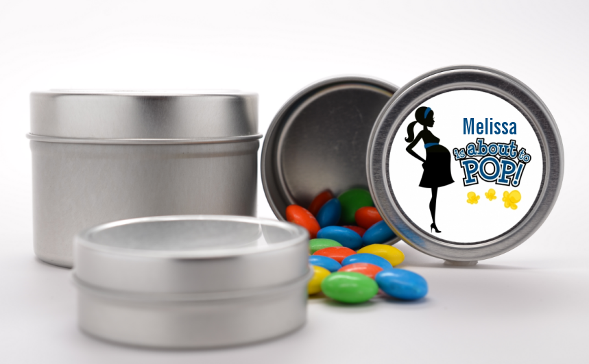 About To Pop Mommy Grey - Custom Baby Shower Favor Tins