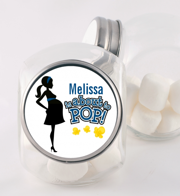 About To Pop Mommy Grey - Personalized Baby Shower Candy Jar