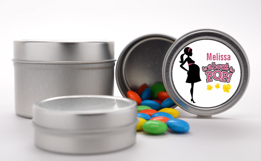 About To Pop Mommy Navy Blue - Custom Baby Shower Favor Tins