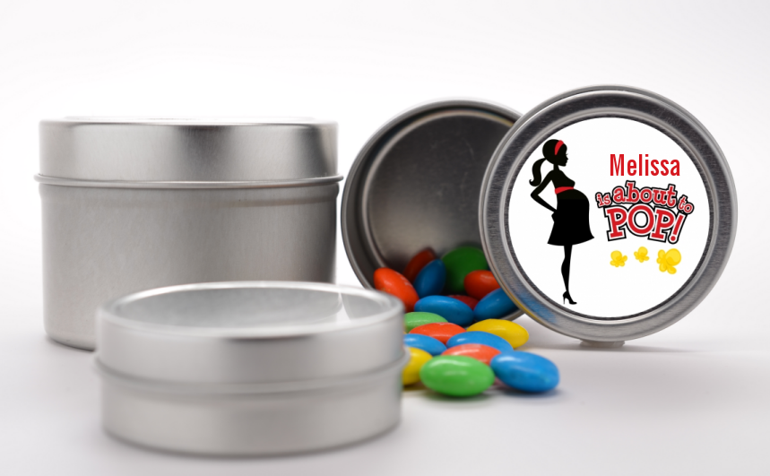 About our About To Pop Mommy Red Baby Shower Hershey Kiss sticker labels