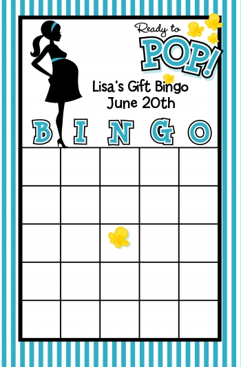 Personalized Baby Shower Ready To Pop gift bingo game cards make a great Baby Shower game that gets everyone involved. Each card holds blank spaces to allow your guest to fill in their own items they think were on the mommy-to-be's registry.