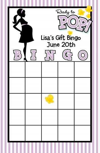 Personalized Baby Shower Ready To Pop Blue gift bingo game cards make a great Baby Shower game that gets everyone involved. Each card holds blank spaces to allow your guest to fill in their own items they think were on the mommy-to-be's registry.