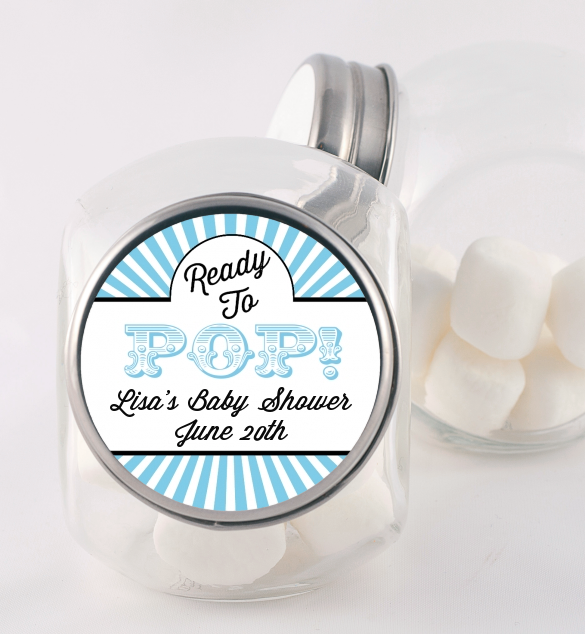 Ready To Pop Blue Stripes - Personalized Baby Shower Pocket Mirror Favors