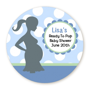 Ready To Pop Chevron Blue and Green - Round Personalized Baby Shower Sticker Labels