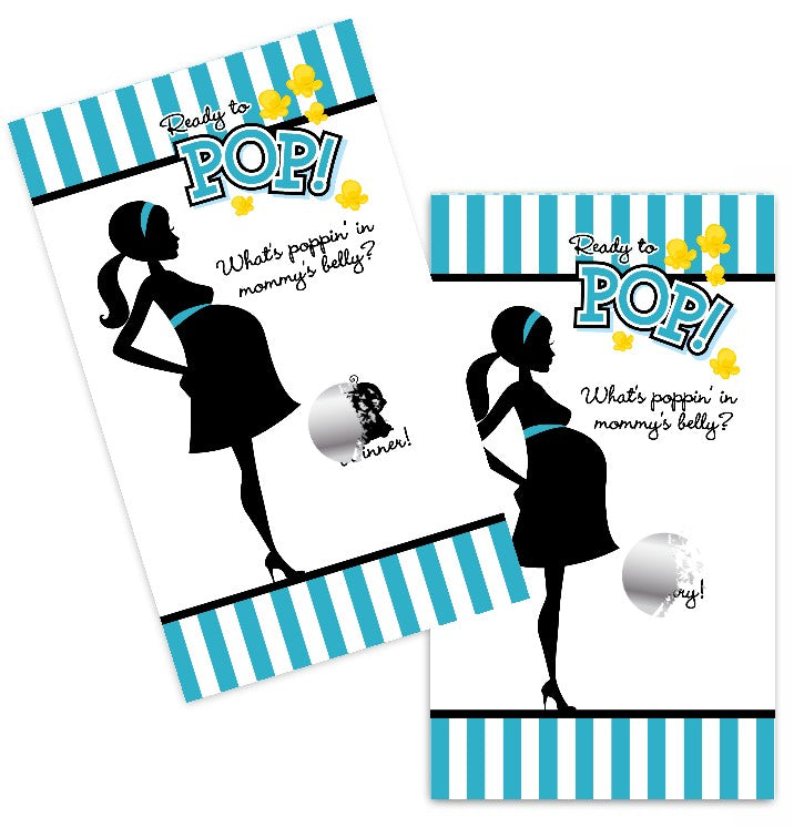 Our Scratch Off Game Pack is available in many of our most popular baby shower themes including our Ready To Pop Dark Pink.