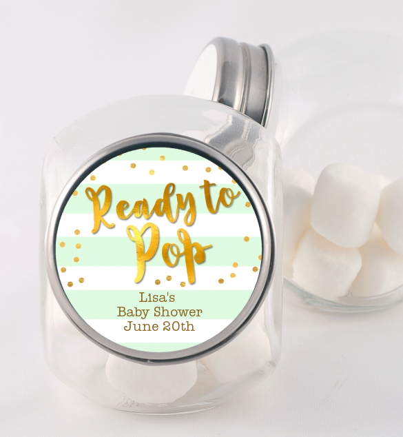 Our Ready To Pop Gold Baby Shower Pocket Mirrors are the perfect themed favor. Each adorable mirror is personalized with your custom text and is designed to match our Ready To Pop Gold theme perfectly.