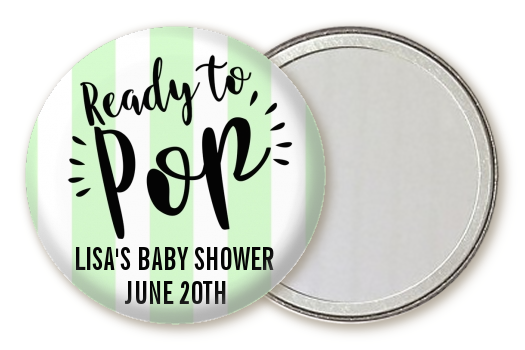 Our Ready To Pop Metallic Dots Baby Shower Magnets are the perfect themed favor. Each magnet is personalized with your custom text and is designed to match our Ready To Pop Metallic Dots theme perfectly.