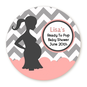 About our Ready To Pop Navy Blue Stripes and Red Baby Shower custom round sticker labels