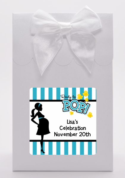 Why not add our Ready To Pop Pink custom favor bags to complete your Baby Shower theme! These favors are shaped like a bag and are constructed out of stiff cardboard. Our custom favor or goodie bags are shipped flat complete with free satin bows and custom Ready To Pop Pink labels, all you need to do is assemble them and stick on the adhesive bows and stickers!