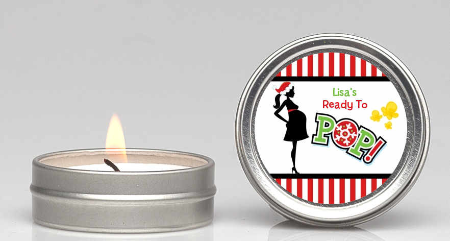 She's Ready To Pop Christmas Edition - Personalized Baby Shower Pocket Mirror Favors
