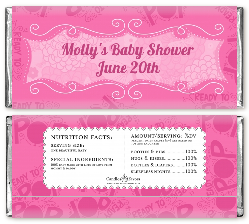 If you are having a She's Ready To Pop Pink themed Baby Shower why not give your guests She's Ready To Pop Pink popcorn favors with our personalized She's Ready To Pop Pink Baby Shower popcorn wrappers. Our She's Ready To Pop Pink popcorn wrappers are personalized with up to three lines of text and are printed right here in the USA on our high quality digital press 80lb paper!