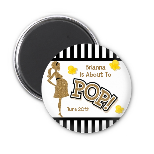 About To Pop Gold Glitter - Personalized Baby Shower Magnet Favors