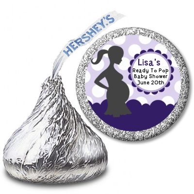 About our Ready To Pop Purple with white dots Baby Shower Hershey Kiss sticker labels